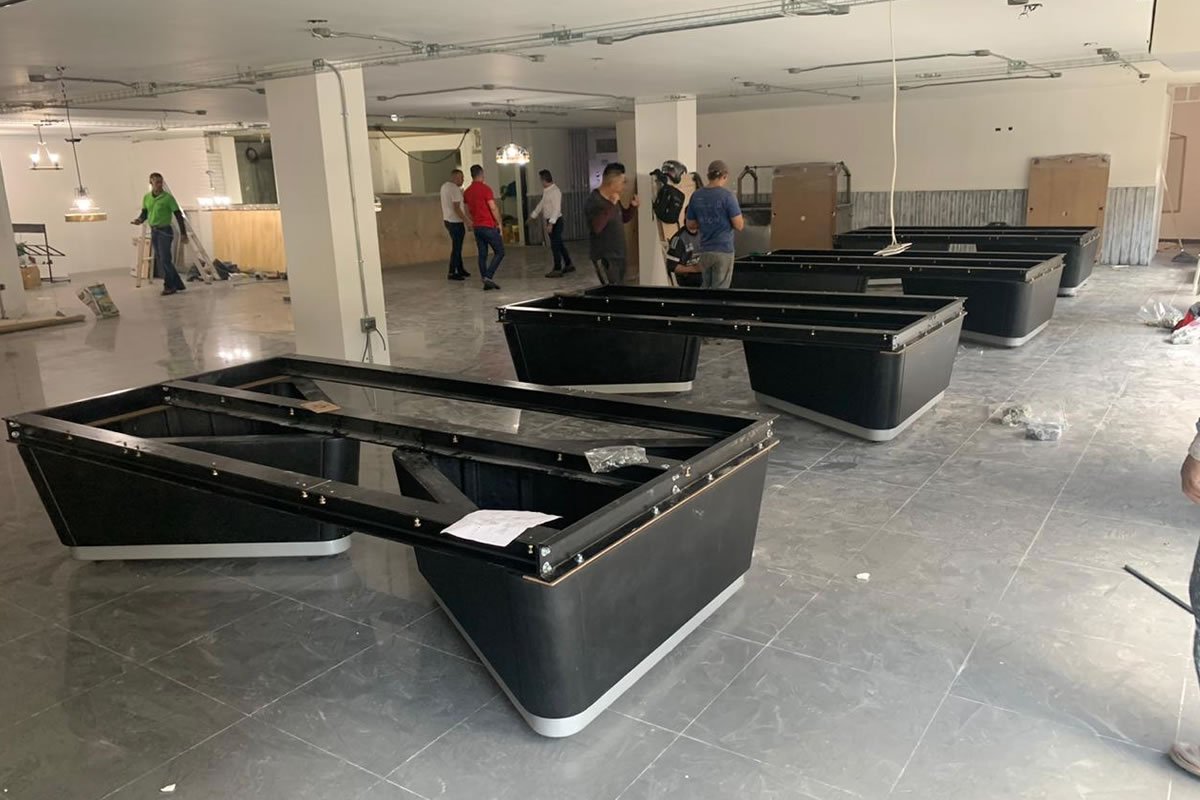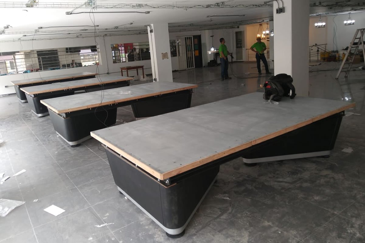 Mesa profesional con normas y medidas internacionales para torneo.